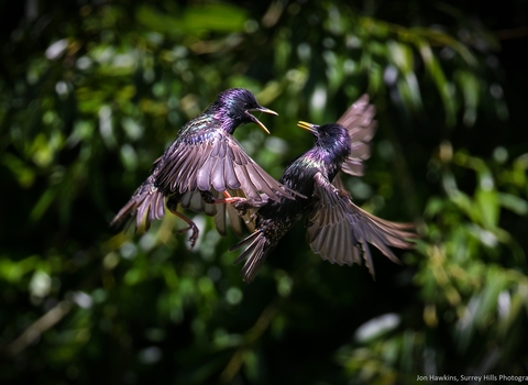 Adult starlings are a beautiful, oily black colour, with a purple and green sheen. In the winter, they are covered in tiny beige spots. Young starlings are dark grey-brown.Where to find