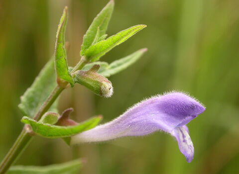 Skullcap can be found on damp ground, such as marshes, fens, riverbanks, pond margins and canalsides. This delicate flower blooms between June and September and is pollinated by long-tongued bees; it is also the only foodplant of the Skullcap Leaf Beetle - a yellowy-brown beetle with a black head and four spots on its back.