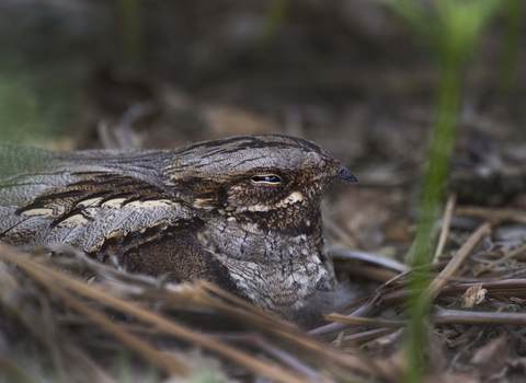 The easiest way to find out if the nocturnal and well-camouflaged nightjar is about is to listen out for its distinctive 'churring' call at dusk. A summer visitor, it is most numerous in southern England.