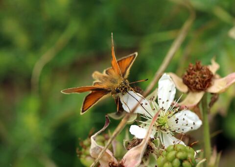 The Essex skipper can be found in a variety of grassy habitats, from chalk meadows to roadside verges. They skip over the grass with a fast, darting flight, stopping to take nectar from flowers. Females lay their eggs on grasses in summer, but the eggs don't hatch until the following spring. The caterpillars feed on grasses, particularly cock's-foot. When they're fully grown, they use silk to attach themselves low down on a grass blade and pupate, emerging as an adult butterfly around three weeks later.What to look for